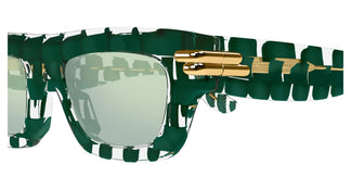 Forma cuadrada unisex con la parte superior plana. Rico detalle metálico ribbon con superficies desiguales. Hay un bisel en la parte superior de las lentes que suaviza la mirada.