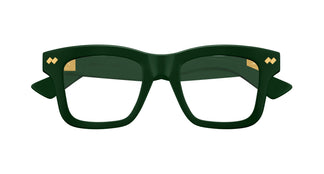 Diseño cuadrado oversize. Adorno de metal precioso que se asemeja a dos cintas. Logo de Bottega Veneta grabado a láser en la cara externa de la varilla izquierda.