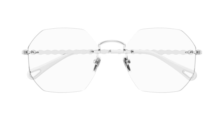 Disseny lleuger amb muntura a l'aire i lents gruixudes úniques realçades mitjançant un bisellat especial. Varetes metàl·liques fines amb l'icònic detall festonejat de chloè. Els terminals tenen l'emblemàtic detall de la llàgrima de chloè eyewear en metall.