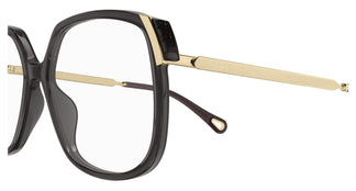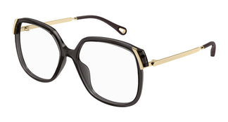 Muntura quadrada oversize amb frontal d'acetat i varetes de metall decorades amb el logotip de Chloé gravat a làser a la lent. Unió única entre les varetes i el frontal. La línia minimalista de la vareta continua al frontal i un preciós terminal emmarca el lateral.