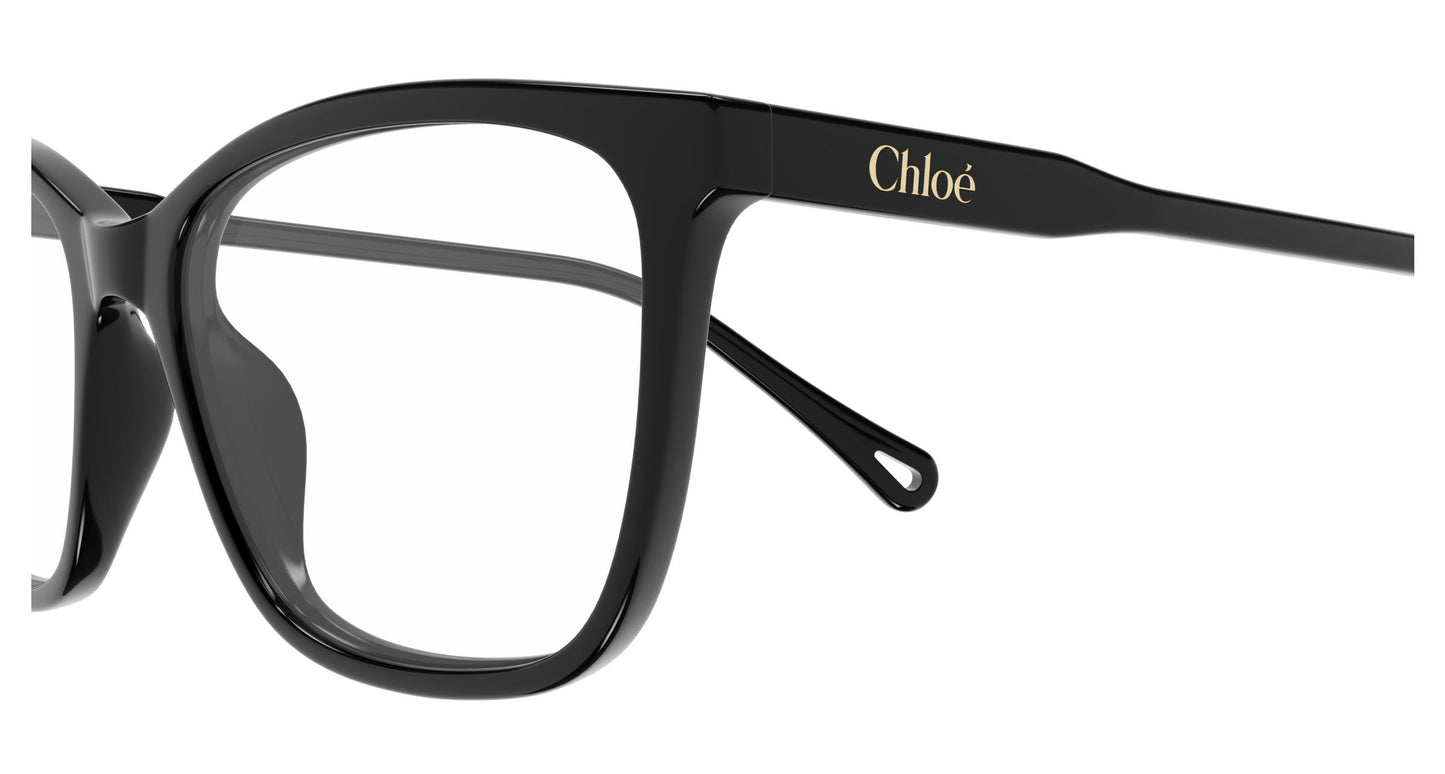 Disseny rectangular en acetat de gruix fi. Logotip Chloé d'esmalt daurat a la vareta esquerra i detall d'adhesiu metàl·lic a la punta de la vareta.