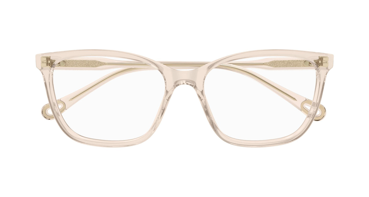Disseny rectangular en acetat de gruix fi. Logotip Chloé d'esmalt daurat a la vareta esquerra i detall d'adhesiu metàl·lic a la punta de la vareta.