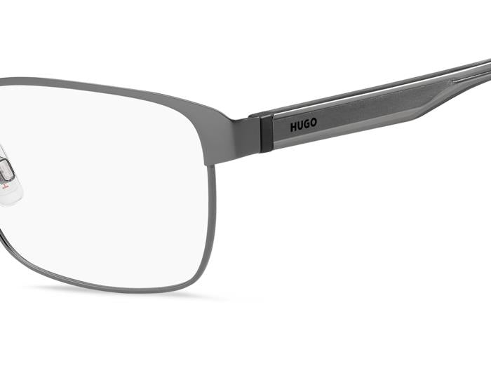 Oplev sofistikering og stil med Hugo optiske briller, model Hg 1361. Dette rektangulære stel, designet til den moderne mand, kombinerer styrken af rustfrit stål med en elegant mat mørk rutheniumfinish. Subtilt skulpturelle brikker og en omhyggeligt udformet bro giver en upåklagelig pasform og uovertruffen komfort. En præcis kaliber sikrer, at hvert blik formidler tillid og sondring. Et vigtigt tilbehør til manden, der sætter pris på tidløs elegance.