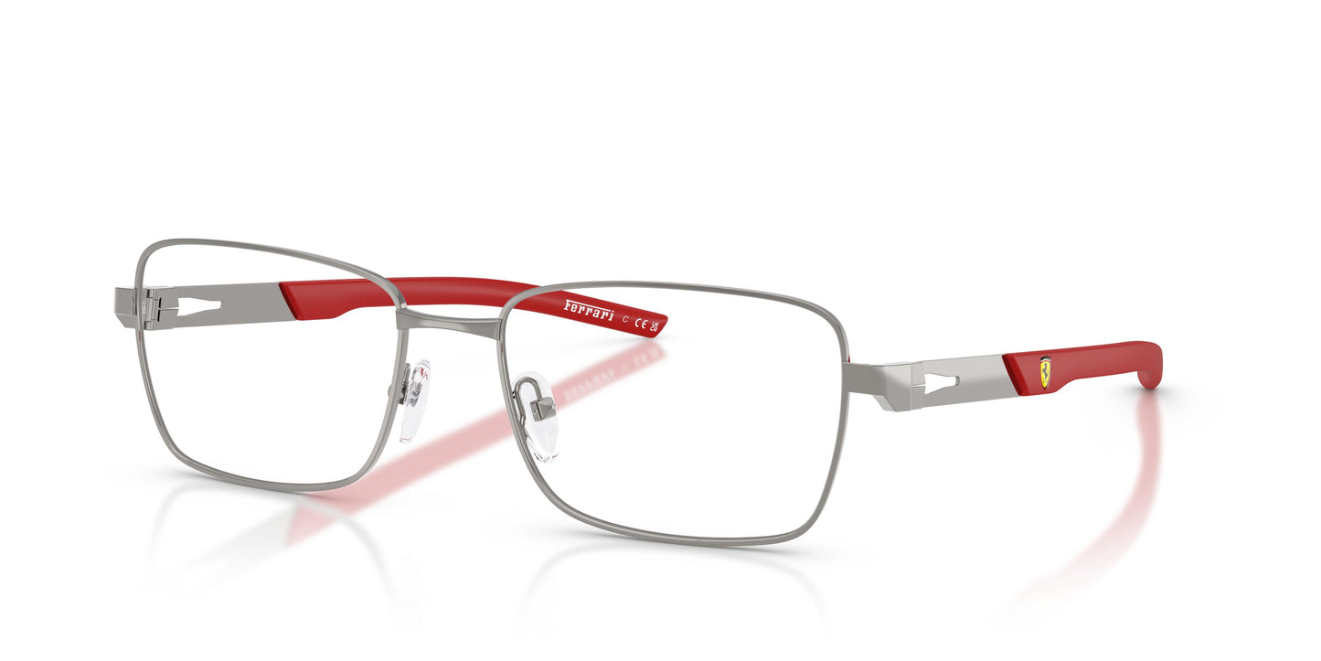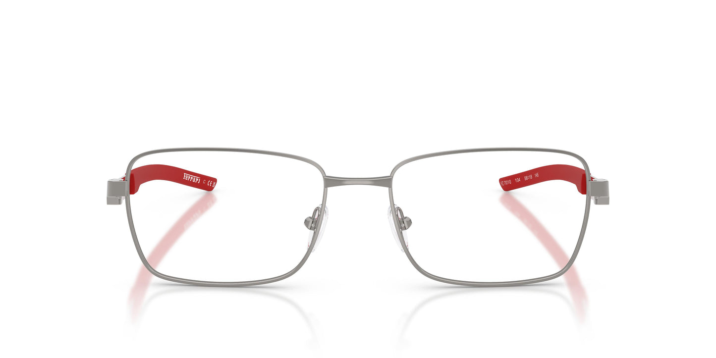 Esta versión inspirada en los deportes de motor de una forma rectangular clásica cuenta con componentes personalizados e icónicos signos de la marca. La montura metálica crea un aspecto refinado, mientras que las patillas delgadas revelan el diseño único de la bisagra sin tornillos. Una combinación ganadora de estilo Scuderia Ferrari e innovación técnica. Monturas rectangulares de metal en negro mate, bronce de cañón mate, plata brillante o bronce de cañón brillante. La exclusiva bisagra personalizada sin tornillos añade un borde dinámico a las patillas de metal, creando un diseño flexible.