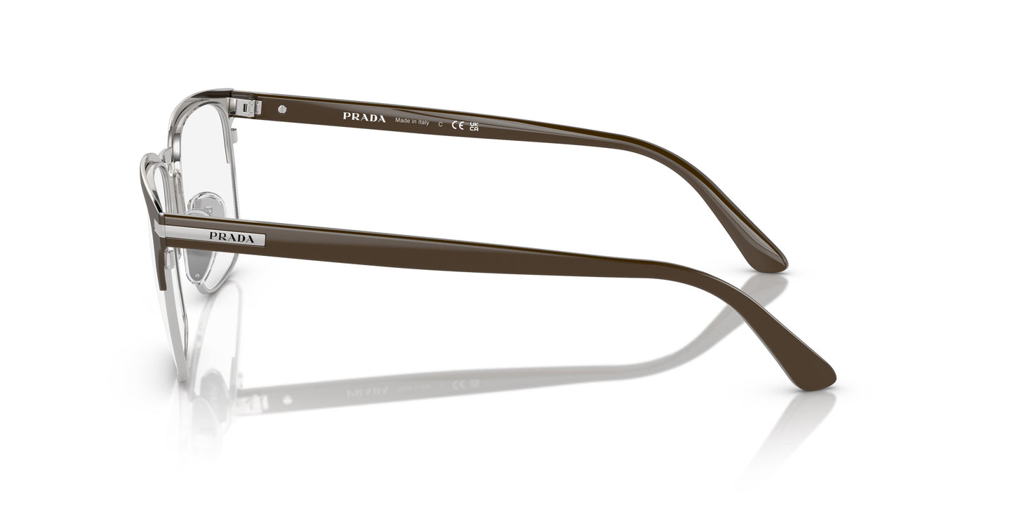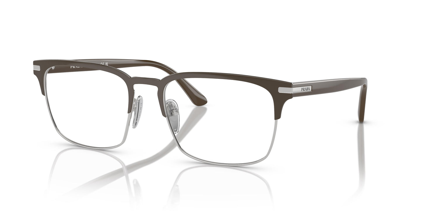 Prada wertet jedes Outfit mit seinen raffinierten und eleganten Korrektionsbrillen auf. Diese rechteckige Metallform wird durch den Bügel, die passenden Acetat-Bügel und die unverwechselbare Logo-Plakette aus Metall veredelt. Dieses bequeme Vollrand-Metallmodell besticht durch einen markanten Bügel, der farblich auf die Acetat-Bügel abgestimmt ist. Die Logo-Plakette aus Metall ist in vier verschiedenen Farben erhältlich und ziert elegant die Acetat-Bügel.