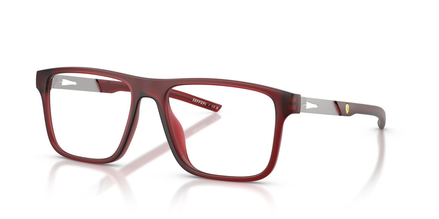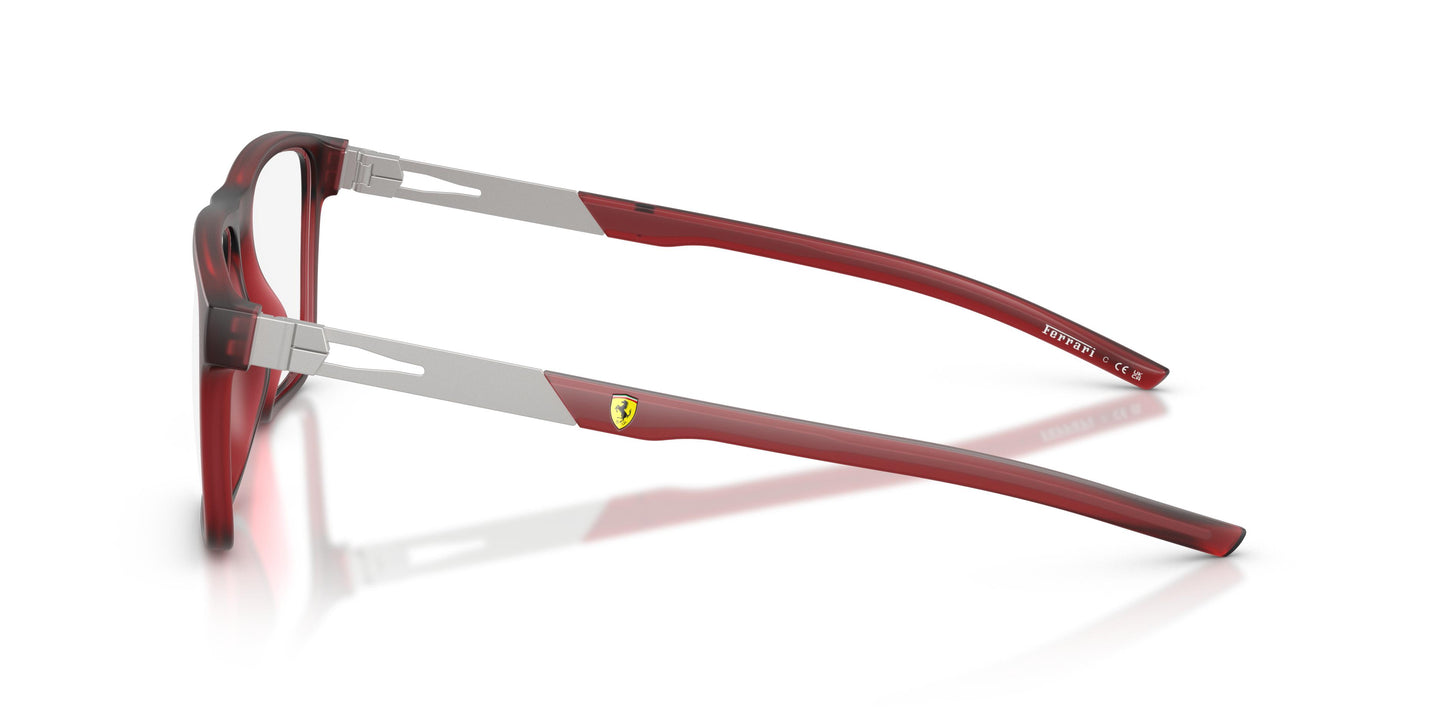 Inspirado en el estilo de los circuitos, este modelo deportivo combina formas angulosas con detalles de diseño personalizados. El mecanismo de bisagra personalizado sin tornillos crea un perfil dinámico, mientras que el frente cuadrado añade un toque clásico a las monturas modernas. Innovadoras y fáciles de llevar, con una estética distintiva de la Scuderia Ferrari. Una montura ligera de construcción mixta con frente inyectado en negro, negro mate, rojo burdeos mate o cristal. La bisagra personalizada sin tornillos crea un detalle aerodinámico único en las elegantes patillas de metal con puntas inyectadas.
