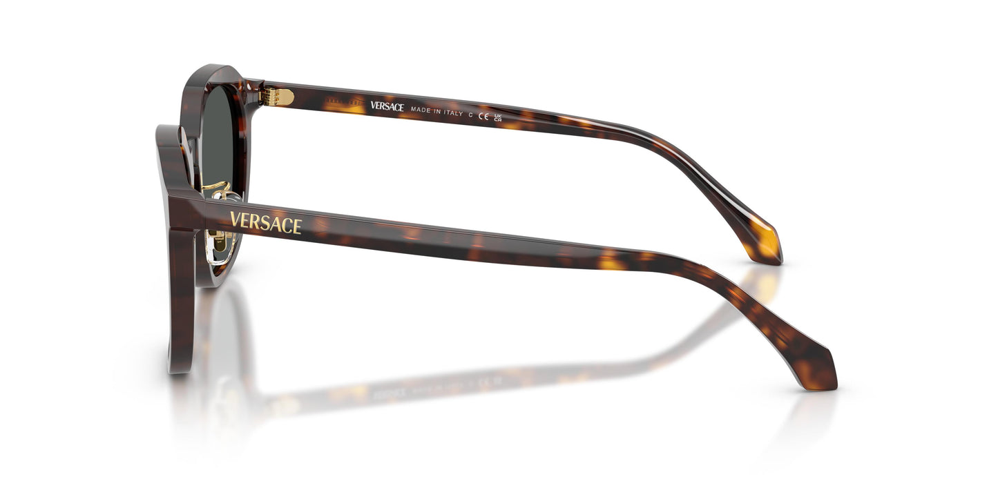 Eine elegante Phantos-Form mit geometrischem Twist und minimalistischer Ästhetik. Schmale Bügel markieren ein anspruchsvolles Profil, während das Versace-Logo einen subtilen Hauch von kraftvollem Stil verleiht. Ein einfach zu tragendes Modell mit niedrigem Steg, das vom asiatischen Design inspiriert ist. Dieses Modell aus leichtem Acetat hat die Form einer Phantos mit Nasenpads aus Metall und dem Versace-Logo in goldenen Lettern. Erhältlich in einer Reihe von Farben, darunter Schwarz, dunkles Havanna, transparentes Hellbraun oder transparentes Grau.
