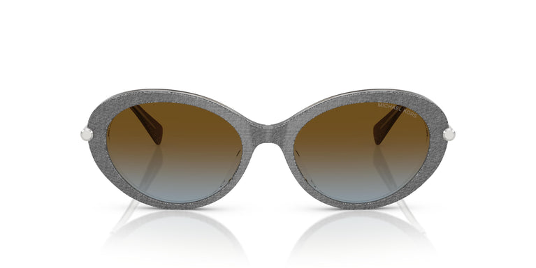 Dieser neu interpretierte ovale Rahmen besticht durch eine elegante Acetat-Front mit markanten Astor-Nieten – eine Anspielung auf die legendären MK-Beschläge. Schlanke Metallbügel verleihen einen Hauch industrieller Eleganz und schaffen eine perfekte Balance zwischen Klassik und Moderne. Die Nietendetails an der Vorderseite des Bügels sind von den legendären Michael Kors Astor-Beschlägen inspiriert. Die Bügelenden sind mit dem Michael Kors-Logo versehen.