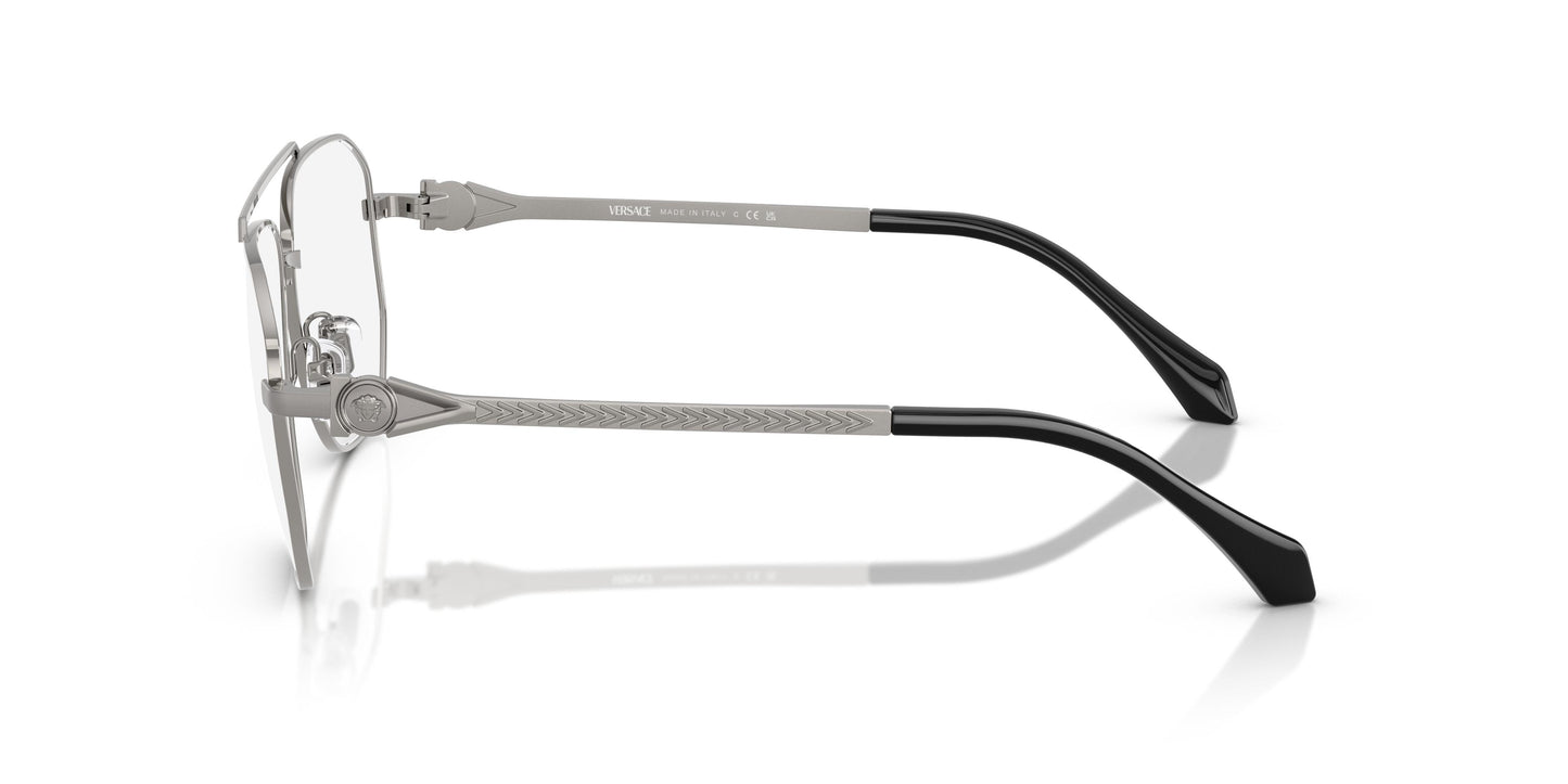 Inspiriert von dem meistverkauften optischen Stil, ist dies ein kühner Look mit einem unverkennbaren Versace-Touch. Der metallische Quallenkopf und das 3D-V-Dekor verstärken das neue Bügeldesign und sorgen für ein opulentes Finish auf übergroßen Metallrahmen. Ein luxuriöser, maskuliner Stil mit einer Retro-Glam-Ästhetik. Die aus Metall gefertigte Navigator-Front hat ein robustes Profil mit doppeltem Steg und geometrischer Form. Ein goldener Quallenkopf aus Metall und eine 3D-V-Dekoration sind auf dem Endstück angebracht und verleihen den Bügeln den kultigen Versace-Stil.