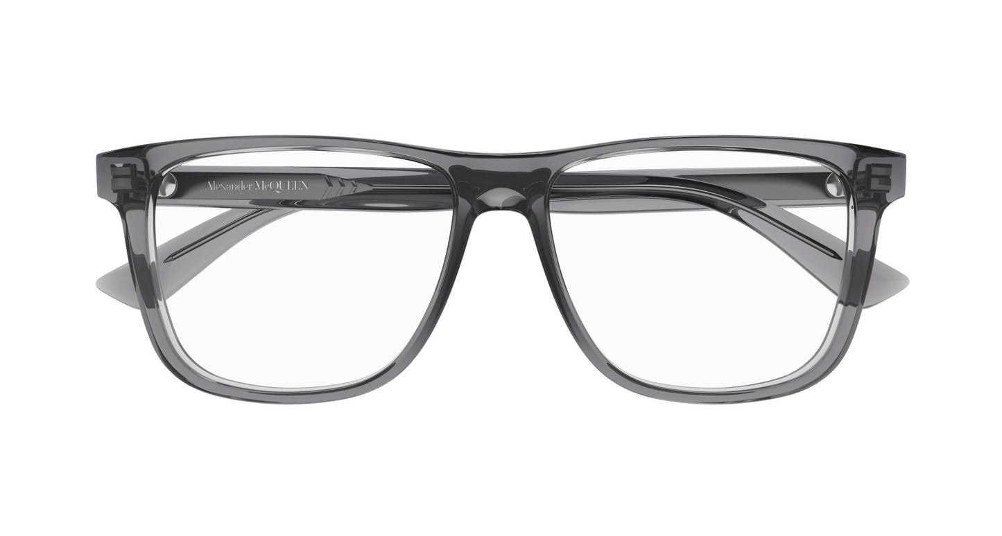 Signature Essential evokes the pure, classic soul of Alexander McQueen through a lightweight, easy-to-wear family. Classic Wayfarer design made from lightweight acetate. The logo features laser-engraved and silver-enamelled lettering. The color palette includes commercial and more modern shades in transparent tones such as gray, nude/powder, and brown/mud.