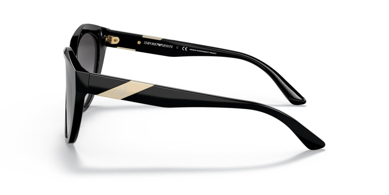 Las monturas de bioacetato embellecidas con una placa metálica diagonal cobran protagonismo en la nueva línea Metal Logo, que aporta otra colección rica e innovadora a la cartera sostenible de Emporio Armani, y que se completa con las lentes de base parcialmente biológica. El sutil a la vez que atrevido logotipo infunde una identidad de gran impacto de amante de la marca. Forma de mariposa actual en bioacetato y lentes de base parcialmente biológica Placa de metal sesgada con logotipo de águila grabado con láser que proporciona identidad de la marca con un giro moderno