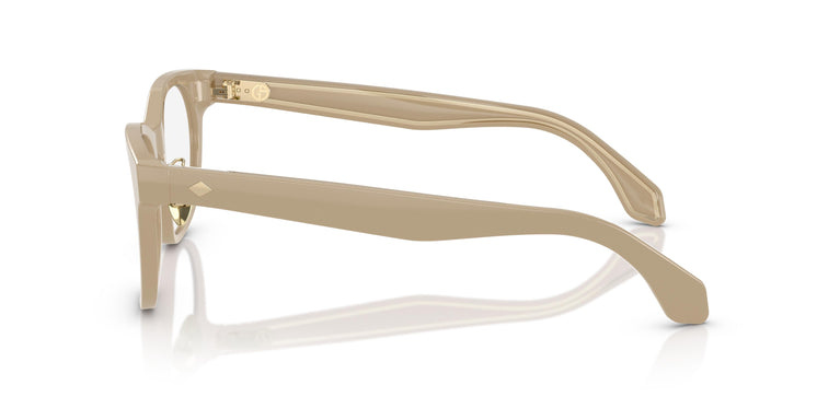 Radiating modernity through an ingenious fusion of contrasts, the rounded shape of the acetate front offers a soft and flattering aesthetic. An intricate collaboration between materiality and geometry elevates this design to cutting-edge Italian craftsmanship. The acetate temples combine transparent and solid colors, allowing the metallic core to subtly reveal itself through a refined inlay technique. The meticulously crafted hinge bears the Giorgio Armani logo, a symbolic embodiment of the brand's enduring legacy of sophistication and attention to detail.