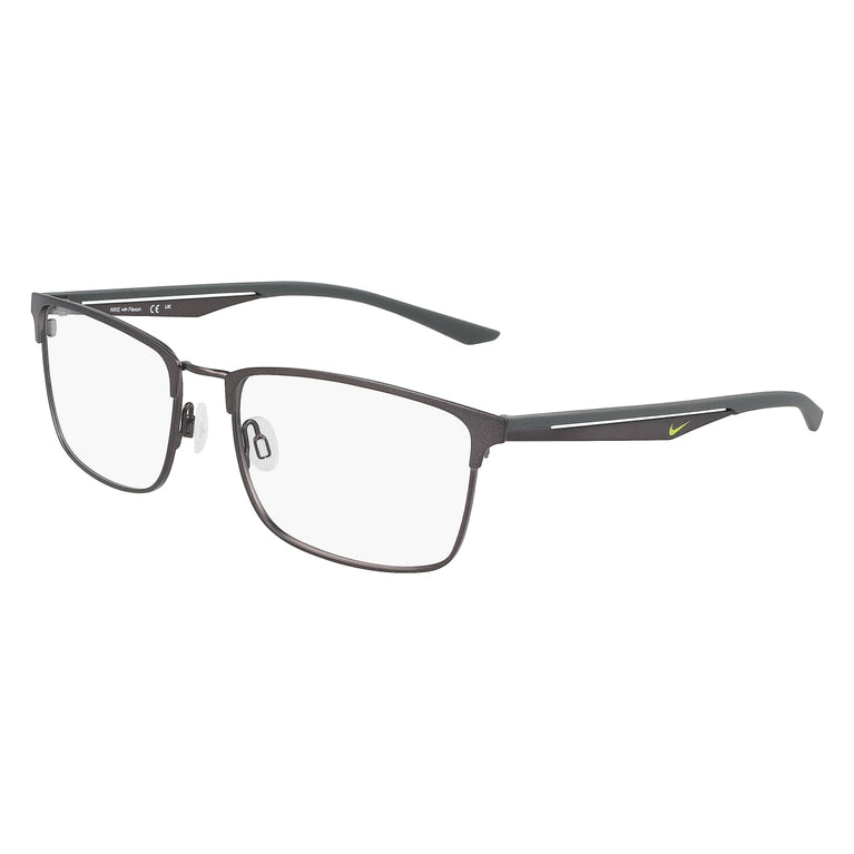 Explore sophistication and modernity with the Nike 4314, optical glasses designed for the contemporary man. The square frame, crafted from memory metal, offers unmatched strength and flexibility, while its satin gunmetal/dark grey finish adds a touch of understated elegance. The meticulously crafted temples blend with a bridge that guarantees comfort and style. An accessory that redefines clear vision and refined aesthetics.