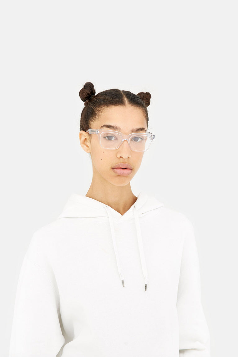 Introducing America Optical Crystal eyewear by Retrosuperfuture, a masterpiece of contemporary design and sophistication. The frame, crafted from translucent pink acetate, envelops the gaze with a touch of distinction. Its square shape, a symbol of modernity, is perfectly complemented by sculpted temples for an impeccable fit. The carefully crafted bridge ensures comfort and style every time. A design that redefines optical elegance for everyone.