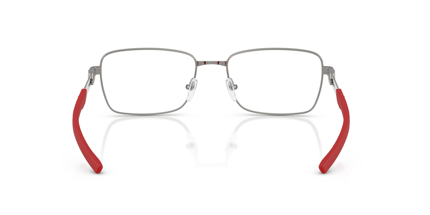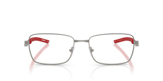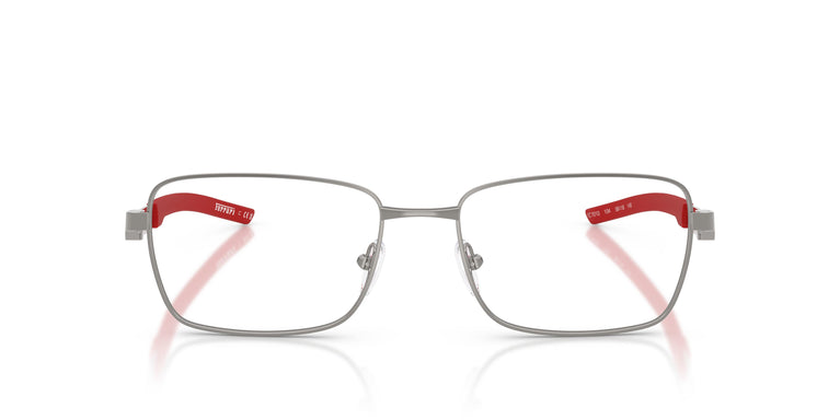 Esta versión inspirada en los deportes de motor de una forma rectangular clásica cuenta con componentes personalizados e icónicos signos de la marca. La montura metálica crea un aspecto refinado, mientras que las patillas delgadas revelan el diseño único de la bisagra sin tornillos. Una combinación ganadora de estilo Scuderia Ferrari e innovación técnica. Monturas rectangulares de metal en negro mate, bronce de cañón mate, plata brillante o bronce de cañón brillante. La exclusiva bisagra personalizada sin tornillos añade un borde dinámico a las patillas de metal, creando un diseño flexible.