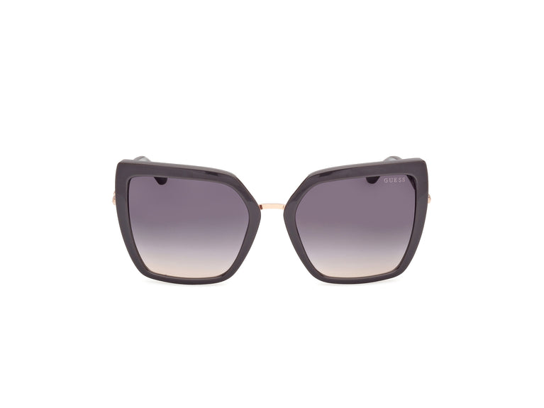 Explore sophistication and style with the Guess Gu00160 sunglasses. Designed for the contemporary woman, these glasses feature an elegant butterfly shape that elegantly hugs the face. The injected-material frame in a glossy gray adds a touch of modernity, while the carefully sculpted temples ensure a perfect fit. The bridge and caliber blend harmoniously, enhancing the overall aesthetic. The gradient smoke-tinted lenses offer a smooth transition and a refined finish.
