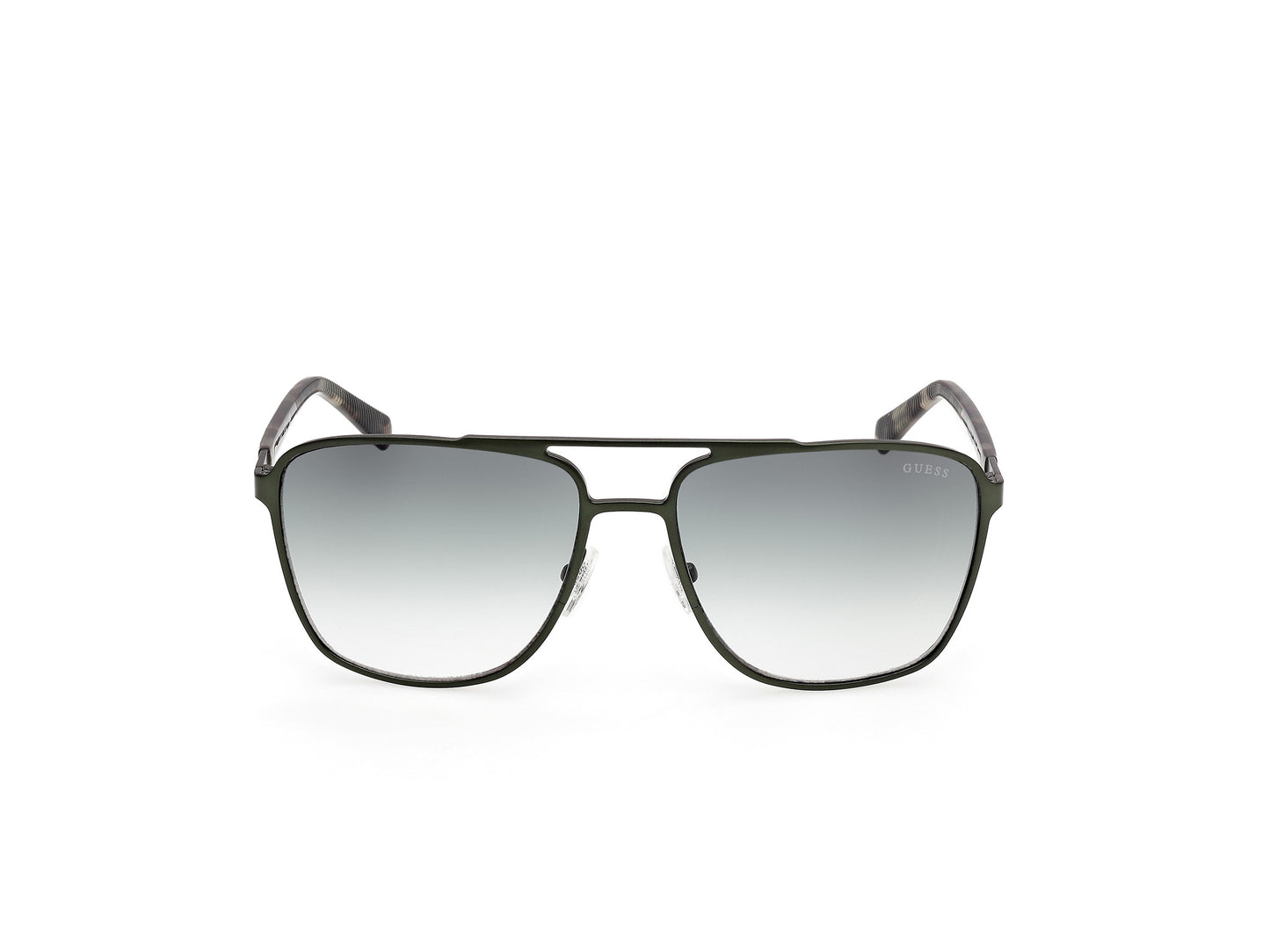 Explore sophistication with the Guess GU00210 sunglasses, a Navigator design that redefines masculine elegance. Its matte dark green metal frame evokes a bold, modern style, while the perfectly sculpted temples offer an impeccable fit. The bridge harmonizes with the precise caliber, providing unparalleled comfort. The gradient green lenses not only protect, but also transform every glance into a gesture of distinction.