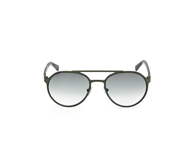 Discover the sophistication of Guess sunglasses, model GU00211, where elegance meets functionality. Featuring a round metal frame in a sophisticated matte dark green, these glasses are the epitome of contemporary style. The carefully designed bridge and temples ensure a comfortable and secure fit. The gradient green lenses not only protect your eyes but also add a touch of mystery and distinction to your look. A must-have accessory for the modern man.