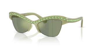 Este diseño sin montura de Swarovski incorpora llamativos cristales a lo largo de la barra de las cejas y las patillas, que añaden un brillo especial. Cada color refleja el arte del cristal característico de la marca, así como la confianza y la individualidad sin complejos, con 46 brillantes cristales en colores transparente, sombra dorada o peridoto. Los cristales redondos en el frente y las patillas añaden personalidad a estas glamurosas y divertidas gafas de sol sin montura. Disponibles en negro con lentes gris oscuro y cristales transparentes, así como en verde lechoso y habana con lentes espejadas y cristales a juego.