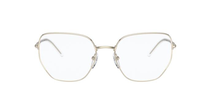 Inspired by the sunglass model, a new soft-angled frame in ultra-thin metal, with colored enamel accents to bring out the intellectual side of contemporary fashion. Soft-angled model with enameled side contours in 3 models and 2 elegant frames in pale gold or rose gold. Slim tubular temples with Prada logo laser-engraved on the metal plate.