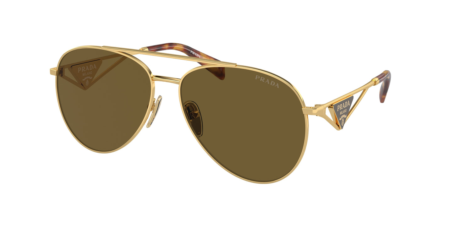 The triangle once again proves to be a House icon across all brand categories. Prada combines the softness of the pilot shape with the straight lines of the temples, creating the iconic three-sided shape. The pilot shape features an openwork metal temple design featuring the House logo on a triangular plaque. Elegant lens colors include dark green or even a clear option with blue light filtering.