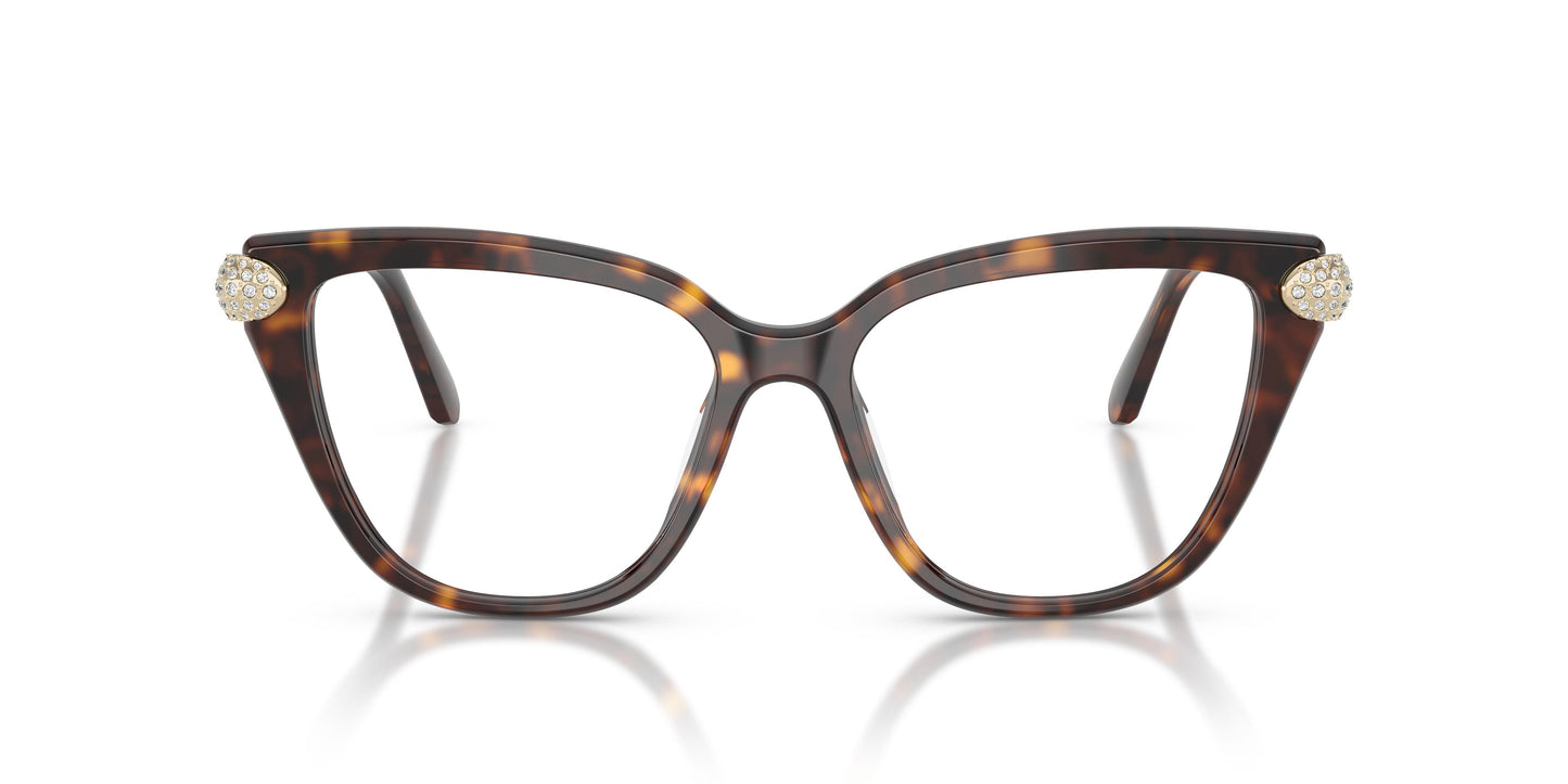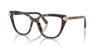 Inspiradas en la familia de joyería Sublima, estas gafas ópticas de ojo de gato incorporan cristales de Swarovski engastados en terminales de metal plateado o dorado, bellamente combinados con un elegante logotipo en las patillas. Las monturas de acetato ofrecen un diseño atemporal que combina una sutil elegancia con un brillo añadido. Las terminales de metal plateado o dorado están adornadas con cristales transparentes en todas las monturas excepto en el color beige lechoso, que tiene cristales dorados en sombra. El modelo óptico cuadrado de ojo de gato está disponible en varios colores de acetato, como el negro, el habana y el lechoso, todos ellos con el logotipo de Swarovski en las patillas.