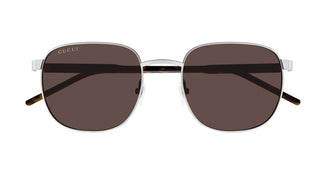 A concept of continuity with a redesigned, elegant combination construction. Rounded design. Laser-engraved Gucci logo on a metal plate on the temple. Iconic color palette with sheer and elegant colors.