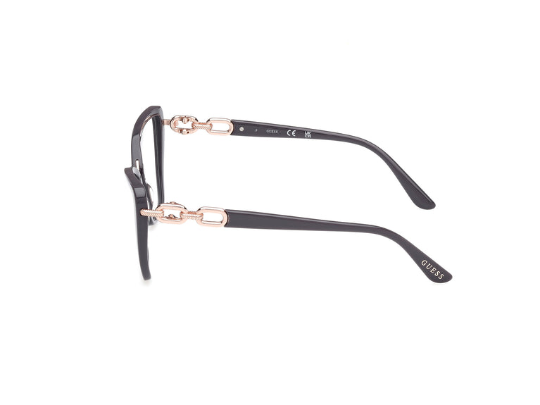 Explore sophistication with Guess GU50180 glasses, designed for the modern woman seeking elegance and style. Their cat-eye frames, made of shiny gray plastic, envelop the face with a mysterious and seductive air. The meticulously crafted temples offer a perfect fit and unparalleled comfort. The delicately integrated bridge adds a touch of distinction. With clear demo lenses, these glasses are the ideal accessory for any occasion.