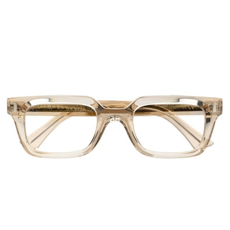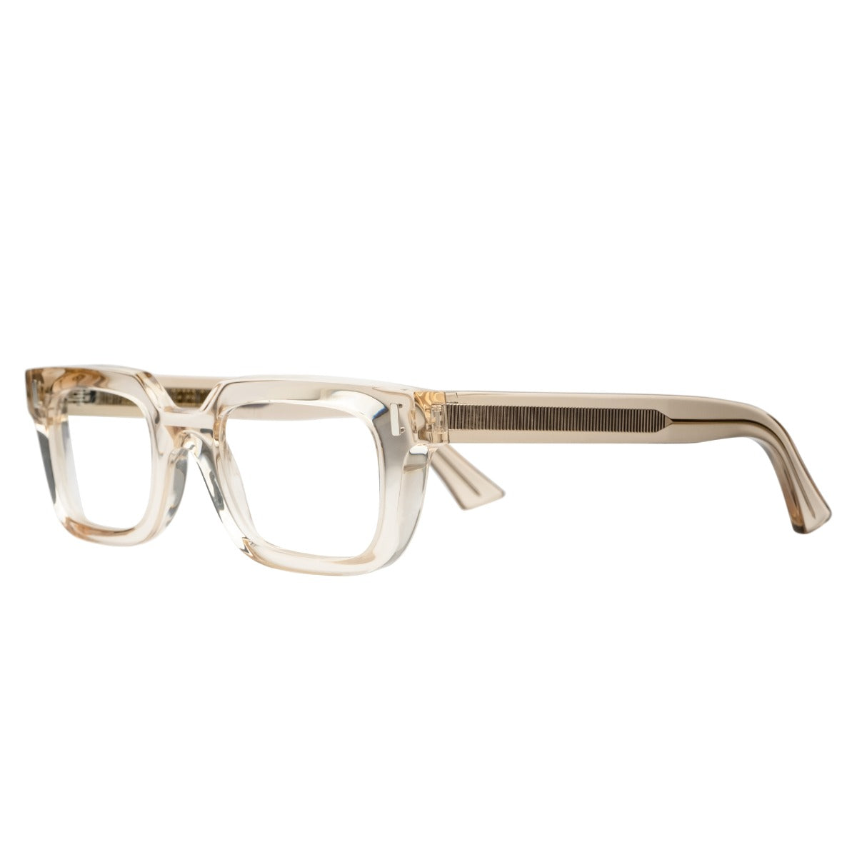 Rectangular optical frame with 9mm acetate "televisioni" milling, milled from the back for greater comfort. Flat bridge, new vertical front temple, and temple-less arms.