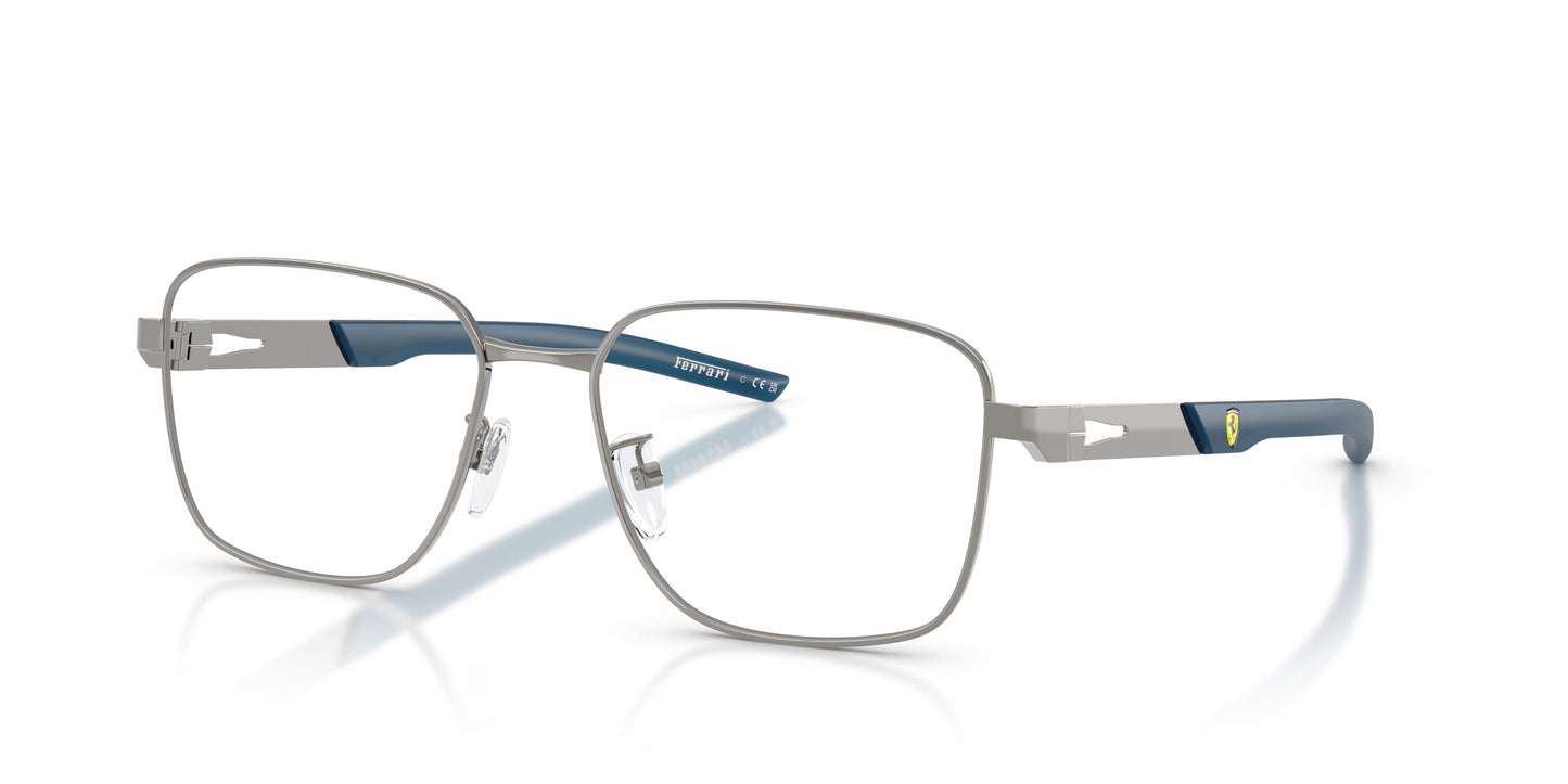 Diseño innovador con un toque de adrenalina. Con un mecanismo de bisagra personalizado sin tornillos, este estilo muestra el enfoque contemporáneo de la Scuderia Ferrari a la ingeniería. El diseño ligero está acabado con los colores icónicos de la marca y el emblema Racing Shield para un look que simboliza velocidad y estilo. Monturas cuadradas de metal con un ajuste alternativo en negro mate, plata, gunmetal o gunmetal mate. La bisagra personalizada sin tornillos conecta las patillas ligeras con el frontal, creando una característica de diseño aerodinámico única.