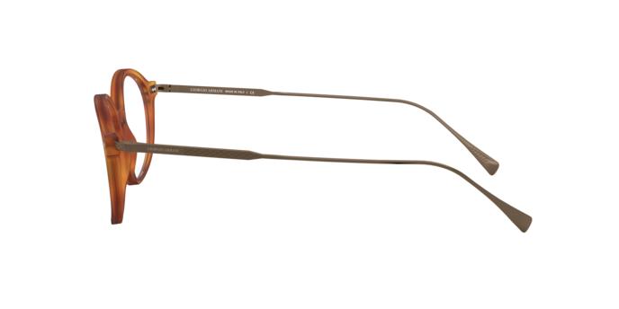 - Revisiting the brand's most iconic shapes, new metal temples with laser-etched tweed and a new, understated gray watercolor acetate. Functional pressed hinges with double screw-on rivets on the Giorgio Armani acetate front with a vintage keyhole bridge.