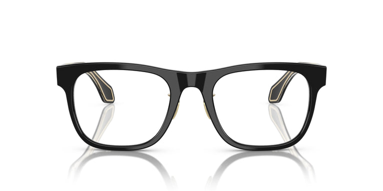 The angular acetate front sets a striking tone with its square shape. The translucent acetate blends with rich solid hues, creating an edgy contrast. This reveals an inlaid metal center layer, sculpted into Armani's iconic rhombus motif along the temple tips, enhancing the architectural structure and shape. The iconic metallic rhombus on the temples exudes an aura of timeless sophistication. The metal nose pads are designed for enhanced comfort and a personalized fit.