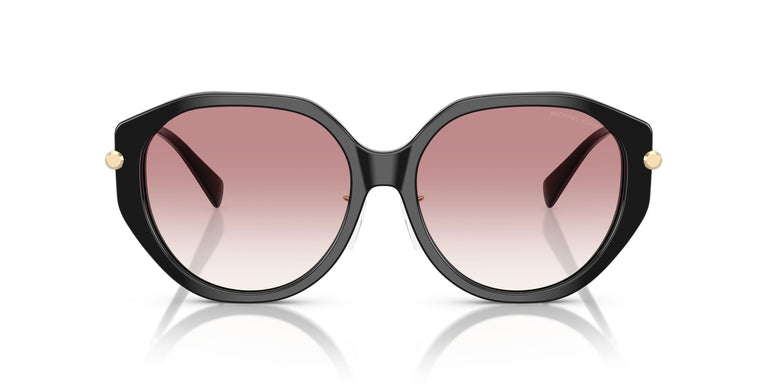Classic acetate frames meet sleek metal temples in this oversized irregular sunglass shape. Front studs on the temples—a nod to the iconic Astor hardware—inject a dose of fresh style rooted in the brand's heritage. Available in classic black and two color options, with gradient lenses. Front stud details on the temples are inspired by Michael Kors' legendary Astor hardware.