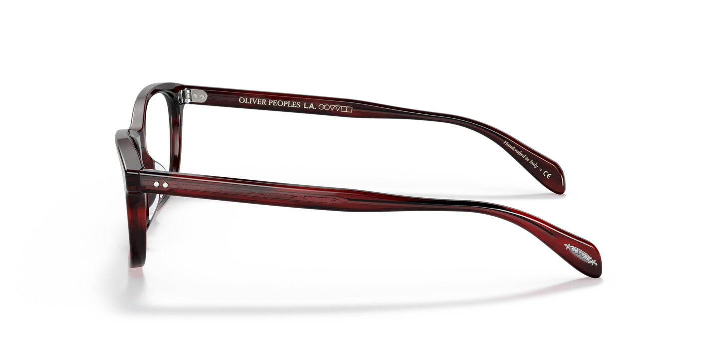 The Ashton model is a feminine optical design handcrafted from polished acetate. With an upward-sloping lens shape, this ultra-thin design is inspired by classic elegance. An Oliver Peoples logo is engraved on the center. Two functional pins on the front of the frame and the temples.