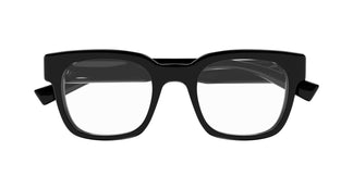 The new script family is inspired by the round volumes of Monsieur Saint Laurent's vintage glasses. Classic square shape with new characteristic lines and bold volumes. Adorned with the Saint Laurent color logo on both temples.