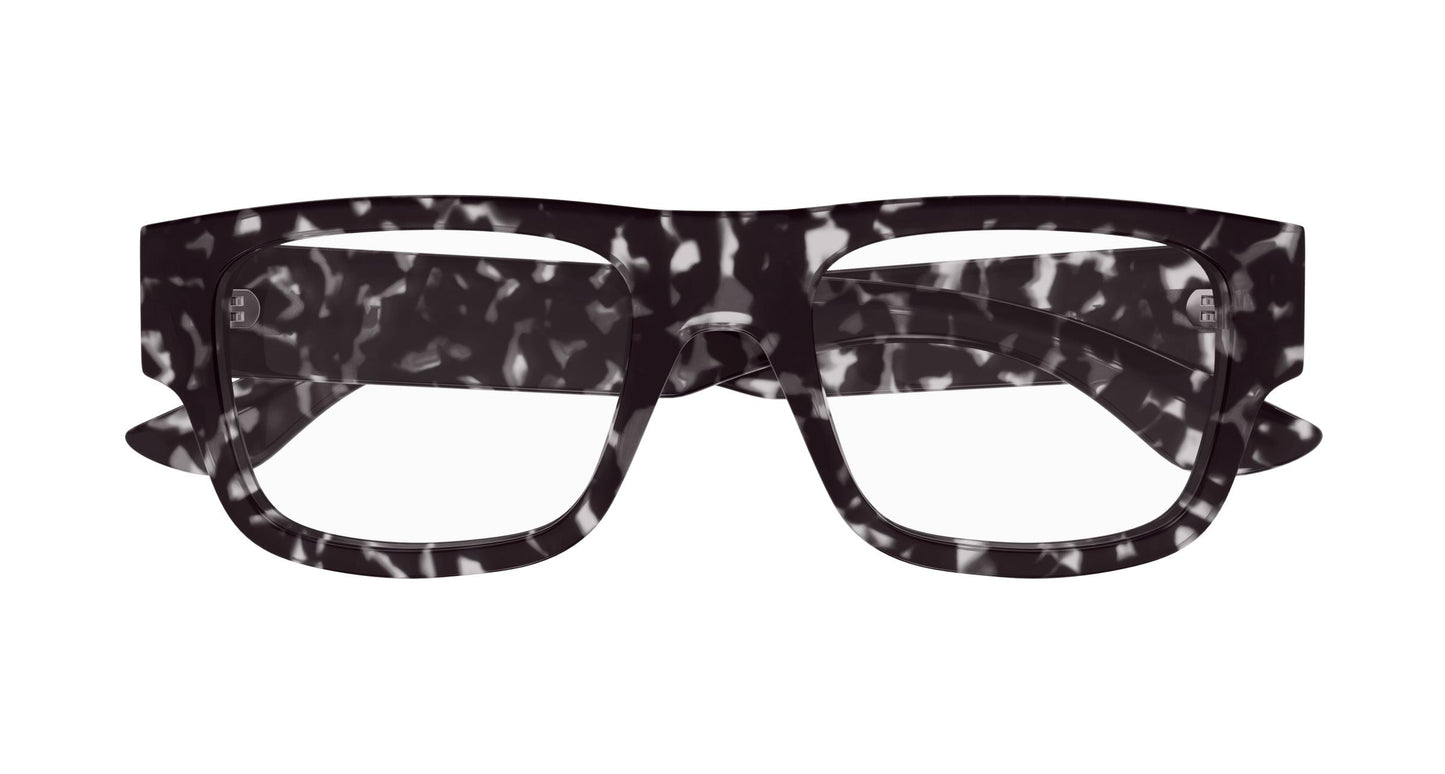 The McQueen logo story is characterized by a distinctive yet easy-to-wear design with visible branding. The bold volumes of the acetate front are combined with injected temples. A classic, masculine rectangular design. The new McQueen logo is applied to the temples with a metallic adhesive.