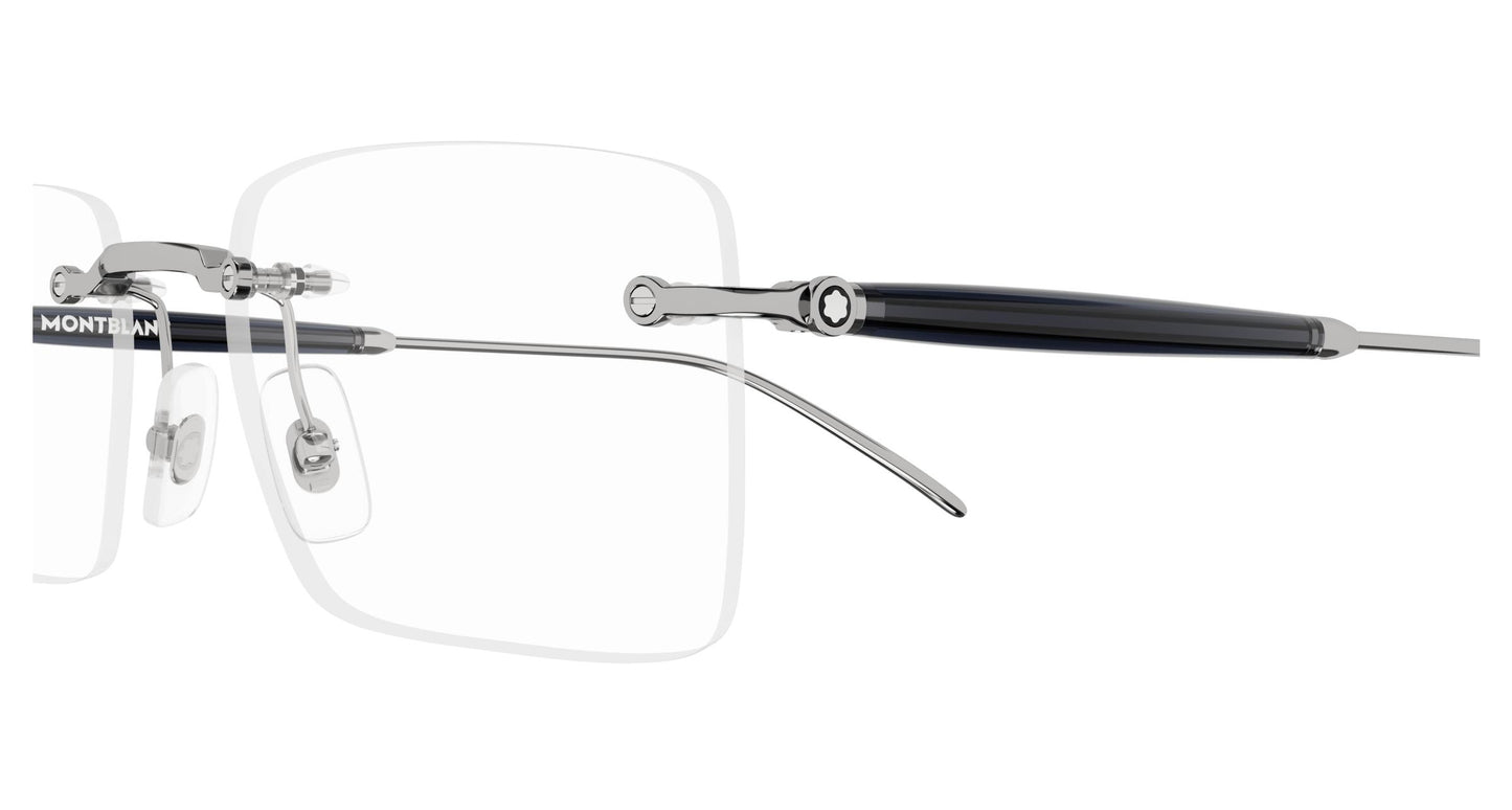 A new family in the Meisterstuck pillar, with a reinterpretation of the stem that elevates this concept even further. The stem features a rounded injected detail combined with a delicate enamel dot on the tips, both inspired by writing instruments. The brand element is represented by the Montblanc Snowcap emblem on the hinges. The silver, gold, and ruthenium constructions are combined with a colorful injected detail on the temples.