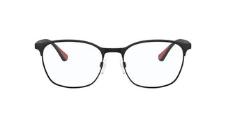 With the minimalist style of Emporio Armani men, colorful rubber details and the eagle logo offer a smart, casual look that's in step with the times. A rounded metal model with a two-tone design in masculine matte and gunmetal gray. Colorful rubber temple tips and the silver eagle logo enhance the slim temples.
