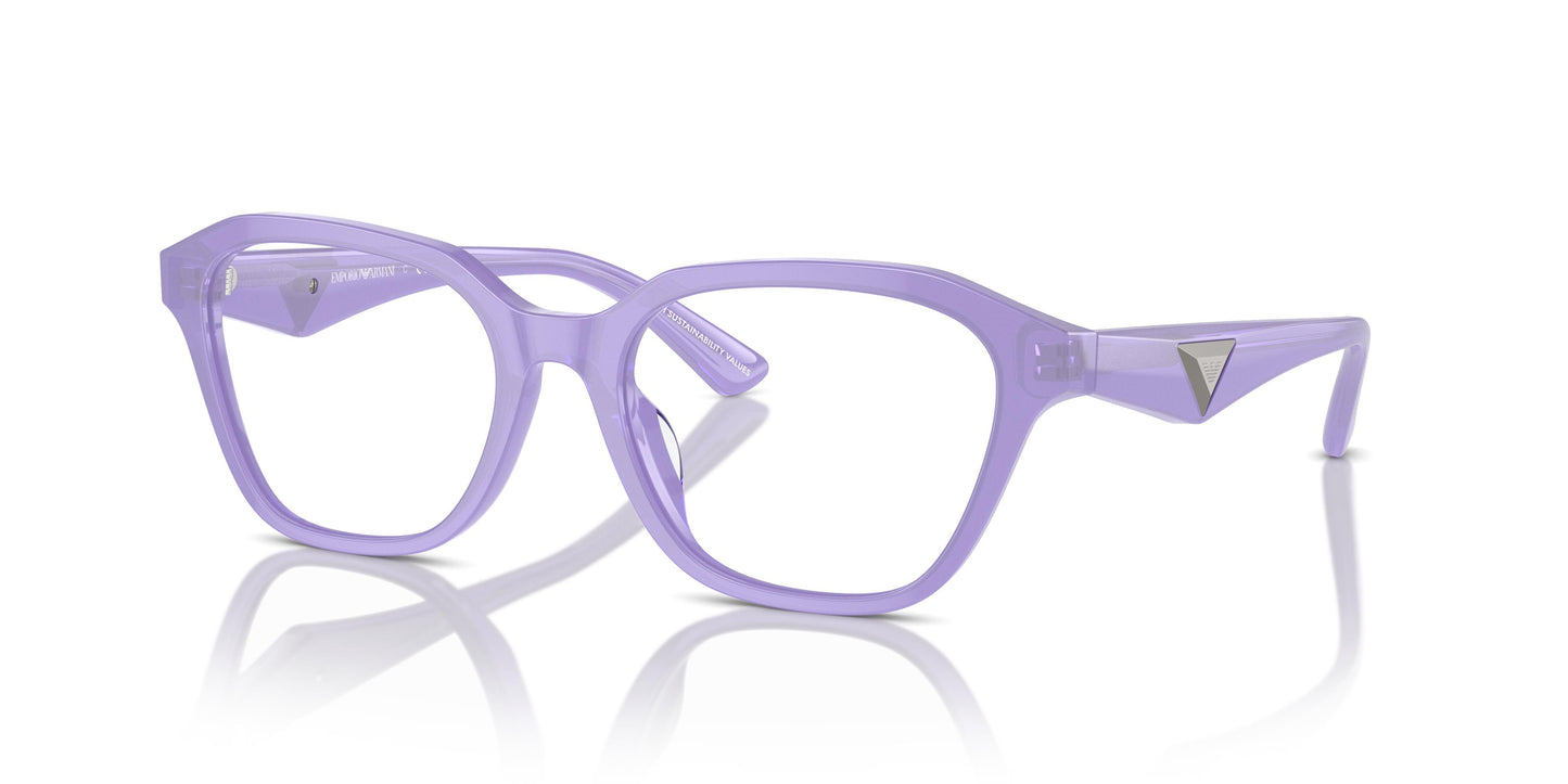 A model with a revamped version of the iconic logo that reinforces the connection with various Emporio Armani collections. This optical frame, with a striking geometric touch, is bold and contemporary. Geometric faceted front inspired by the iconic Emporio Armani triangle logo. Bioacetate temples with the iconic metal triangle eagle logo.