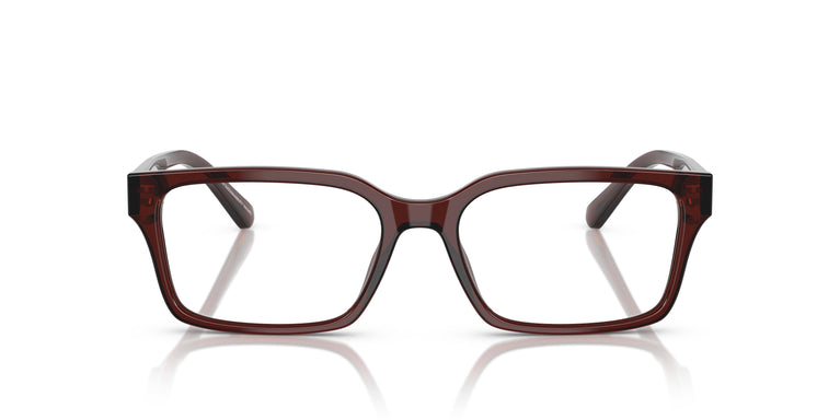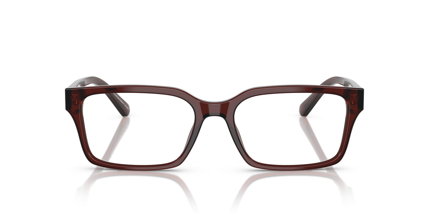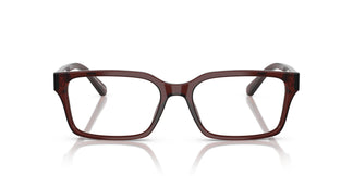 Emporio Armani exudes masculine style with these fresh rectangular bioacetate frames. The transparent or iridescent coating elegantly reveals an inner metal core in the temples, adding a contemporary touch. The eagle logo engraved in the metal design adds a subtle branding touch. Rectangular bioacetate frames with a distinctly masculine front for a bold yet refined look. The translucent or iridescent design of the temples reveals the brand's metal core, adorned with the iconic eagle logo.