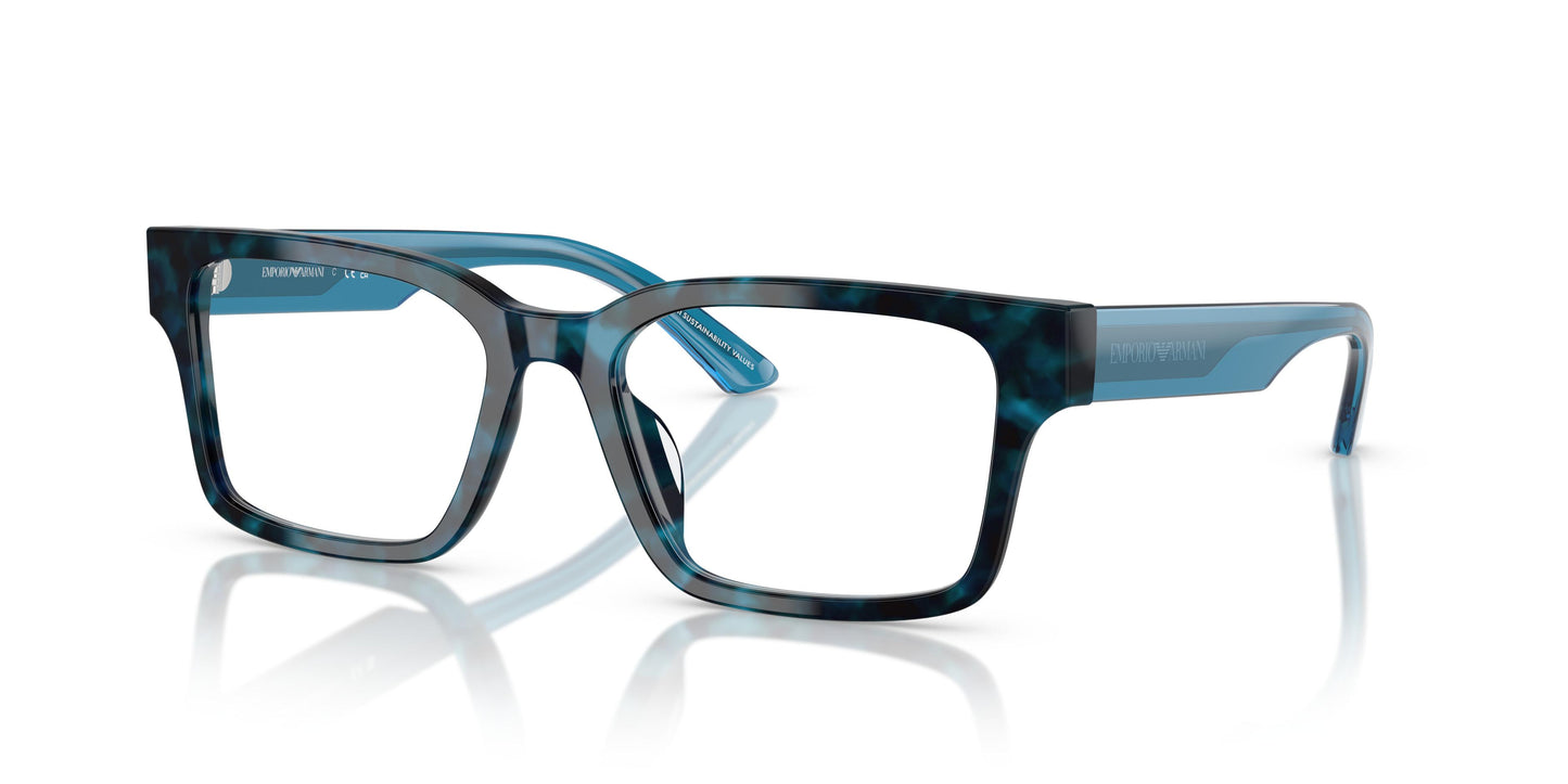 With a feminine rectangular shape, the Havana bioacetate front offers a chic, retro touch, complemented by transparent temples that reveal the Emporio Armani logo engraved along the metal core. A powerful extension of personal style, unmistakably Emporio Armani. The transparent temple design reveals the brand's metal core, adorned with the Emporio Armani logo. Rectangular bioacetate frames combine a feminine front with rich Havana tones, adding an extra touch of elegance.