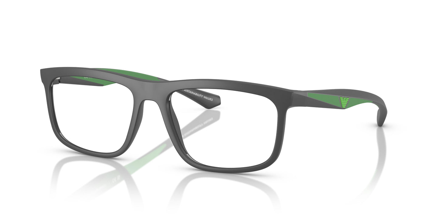 Adopt a fresh and modern style with these optical frames. The rectangular silhouette features subtly curved angles that soften the look. The innovative bi-injected temples, crafted from bio-based nylon fiber and bio-based rubber, ensure uncompromising all-day comfort while adding a signature sporty touch. The iconic Emporio Armani eagle logo, crafted from vibrantly colored rubber, adorns the front of the temple, adding a bold and distinctive touch to each pair. Experience Emporio Armani's commitment to sustainability thanks to the dedicated logo discreetly placed on the inside of the temple.