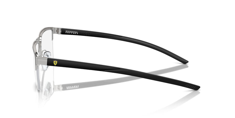 This sporty, injection-molded metal model boasts clean, square lines. True to tradition, the sleek temple features a flexible hinge and the Scuderia Ferrari logo. Available in matte black, or combinations of matte black and brushed gunmetal, brushed silver, or matte yellow. A polished version features a refined, semi-open silhouette and an injection-molded frame. This refined and durable design features a flexible hinge with the Scuderia Ferrari shield logo.