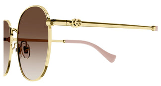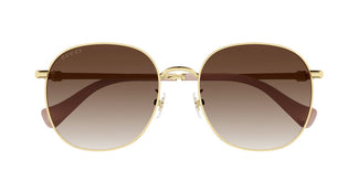 Meet the Gucci Gg1142S, an exquisite piece of design that captures the essence of timeless luxury. With its round metal frame in a sophisticated golden tone, these sunglasses for women evoke elegance in every detail. The brown gradient lenses bring a soft and enveloping nuance, perfect for any occasion. The finely crafted temples and delicate bridge complete this essential accessory for those who value distinction and style in its highest expression.