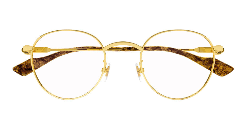 Experience the luxury and distinction of the Gucci Gg1222O, a pair of optical glasses designed for the modern man. Their round metal frame in a sophisticated golden tone redefines classic elegance with a touch of modernity. The perfectly balanced bridge and finely crafted temples ensure a comfortable and secure fit. Standard clear lenses provide a clear and sharp vision, making them the ideal accessory for those who value excellence in every detail.