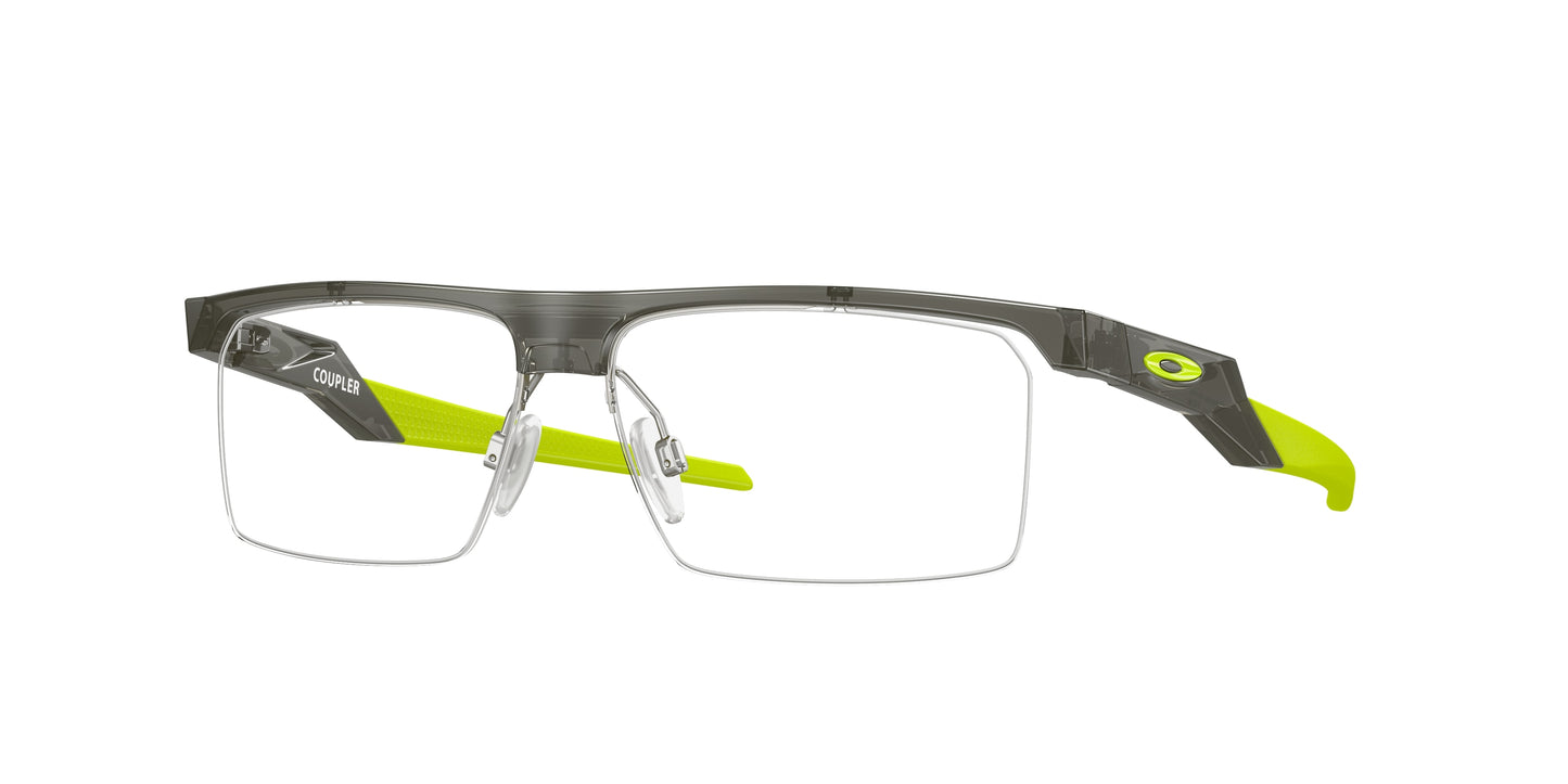 Oakley® is a pioneer and industry leader in sports performance and lifestyle eyewear. Coupler is the first Oakley® prescription frame with a floating half-rim lens and adjustable nose pads. The durable yet lightweight O Matter® frame provides durability and all-day comfort. Adjustable clear grip nose pads help provide the ideal fit and a seamless look.