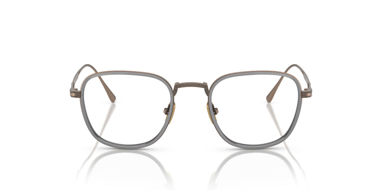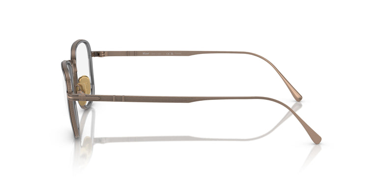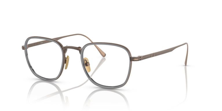 Pure Japanese titanium, visionary Italian design, nothing more. A flawless fusion of international excellence defines the essence of contemporary sophistication: Persol Total Titanium. A modern geometric shape with new double-layer colored frames, a slim guilloché bridge, and signature nose pads. New double-layer colored frames in classic gold or silver titanium frames and modern black or brown titanium frames.