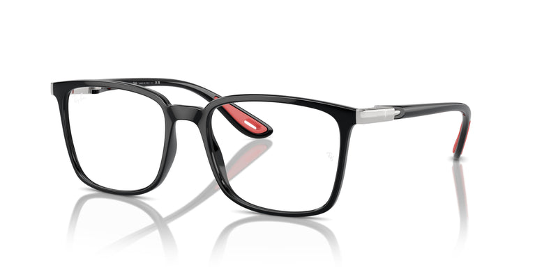 Bold square frames for racing fans with details in the iconic Scuderia Ferrari colors. Rubber temple tips for a secure fit inspired by sports car design, and the Ray-Ban logo engraved on the silver details for an authentic touch. The rubber temple tips come in Scuderia Ferrari red and yellow. This model is available in contrasting and tone-on-tone color combinations inspired by racing tracks.