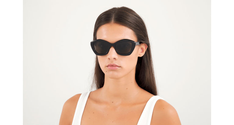 An extremely feminine design, a bold statement that celebrates the power of women and their unique style. A bold acetate structure is enhanced by two distinctive details at the top of the front. The temples are decorated with the laser-engraved Saint Laurent logo.
