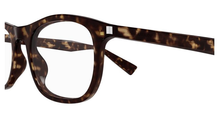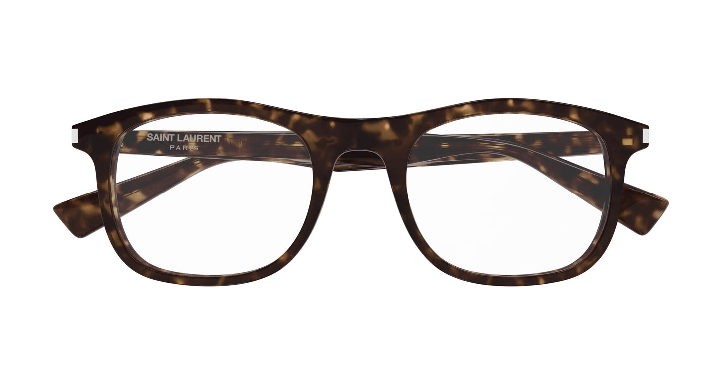 Acetate 'corner angle' with temples inspired by vintage models. Logo with the letters of saint laurent engraved on the temples.